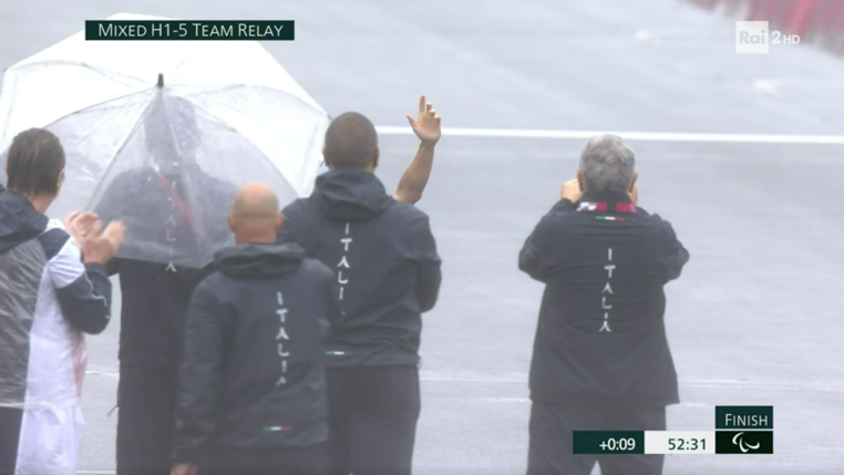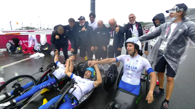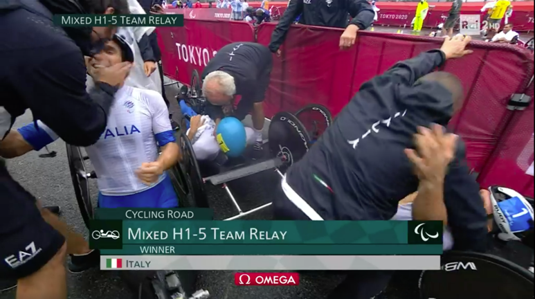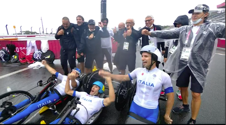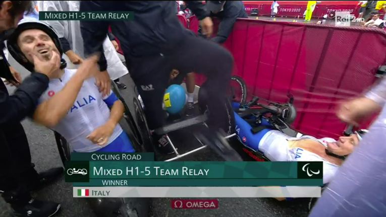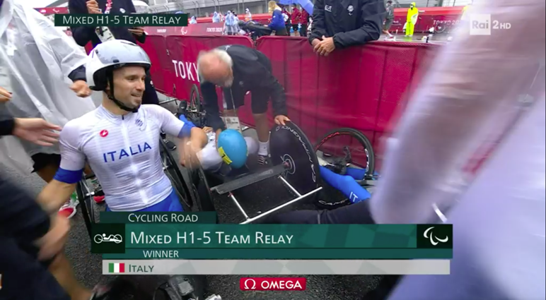 In quella che era stata la gara di Alex Zanardi, la formazione italiana è arrivata prima sul traguardo al termine delle 9 frazioni di gara piazzandosi davanti ai terzetti di Francia, argento, e agli Usa, bronzo.