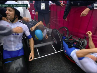 Una gara fantastica, quella che da pochi minuti si è conclusa sul circuito del Fuji a Tokyo, dove uno strepitoso Diego Colombari ha trascinato il terzetto composto anche da Luca Mazzone e Paolo Cecchetto sul posto più alto del podio della gara Team Relay di handbike su strada.