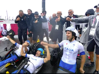In quella che era stata la gara di Alex Zanardi, la formazione italiana è arrivata prima sul traguardo al termine delle 9 frazioni di gara piazzandosi davanti ai terzetti di Francia, argento, e agli Usa, bronzo.
