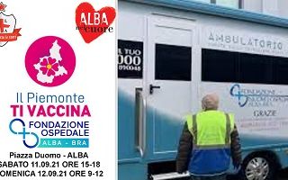 Sabato pomeriggio 11 settembre dalle 15 alle 18, e poi la domenica mattina dalle 9 alle 12, con autorizzazione dall'ASLCN2 locale, sarà presente in piazza del Duomo, l'Ambulatorio Mobile della Fondazione Ospedale Alba Bra con personale medico, infermieri e volontari, per somministrare il vaccino anti covid19 gratuitamente a tutti coloro che lo richiederanno. Il personale presente sarà disponibile anche solo per fornire informazioni in materia.