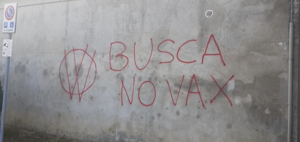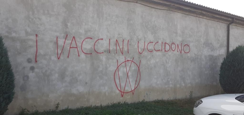 Scritte contro i vaccini, proprio nel giorno in cui, anche in Granda, ha preso il via la campagna per la terza dose, al momento destinata solo ai soggetti fragili.