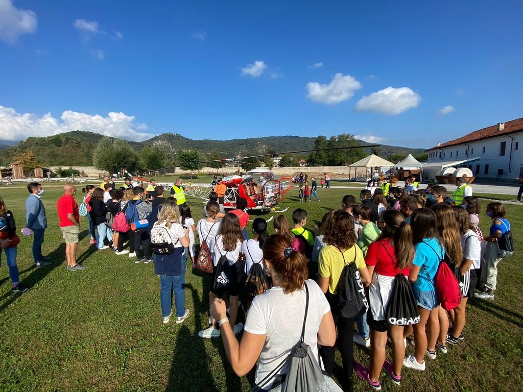 Il pomeriggio poi è continuato con la visita all'elicottero, un modello restaurato dal comandante Davide Giordano, nonno dei moderni velivoli usati per spegnimento incendi, elisoccorso, protezione civile e quindi di indubbia utilità, come ha sottolineato il pilota, mentre Davide Vailati del Paradelta club di Cuneo e Danilo Racca di Flyespression (il pilota del parapendio che al mattino ha volato con la mongolfiera) hanno illustrato ai presenti i segreti di questi sport rispettosi dell'ambiente. Da ultimo non poteva mancare il drone, nuova frontiera del monitoraggio.