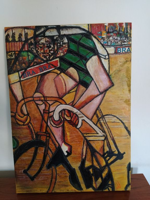 Si tratta di un’opera a tecnica mista dell’artista Maurizio Natale, appositamente realizzata in occasione dell’evento sportivo.