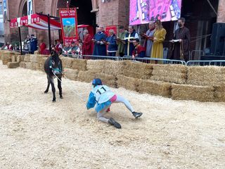 Un epilogo destinato a fare discutere quello col quale si è da poco chiusa la 57ª edizione del Palio degli Asini di Alba, assegnato al Borgo Moretta solamente diversi minuti dopo la fine di una corsa che aveva visto il fantino verde oro Daniele Marcianti (Porchetta su Moretta), già vincitore dell’edizione 2019, terminare per primo i quattro giri della finale disputata sull’anello disegnato tra le piazze Risorgimento, Rossetti e Miroglio.