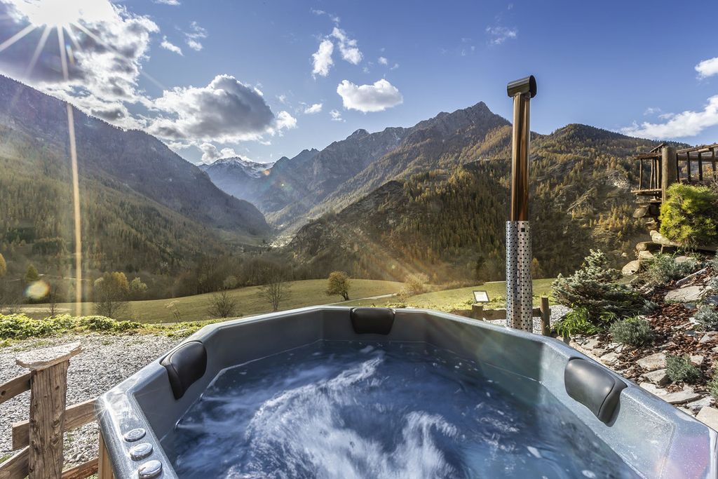 “Dall’arredamento rustico e dai caldi richiami alpini”, le baite che compongono la struttura sono studiate per accogliere il visitatore in un percorso benessere con grotta del sale, bagno turco, vasche idromassaggio e sauna finlandese riscaldata a legna.