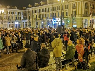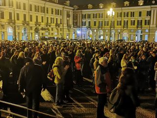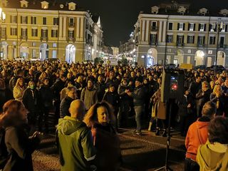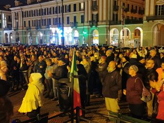 Si è parlato della situazione dei portuali di Trieste e delle nuove strategie di "resistenza passiva" da attuare nei prossimi mesi ieri sera, in piazza Galimberti a Cuneo, durante la nuova maniestazione del coordinamento provinciale free vax-no green pass.