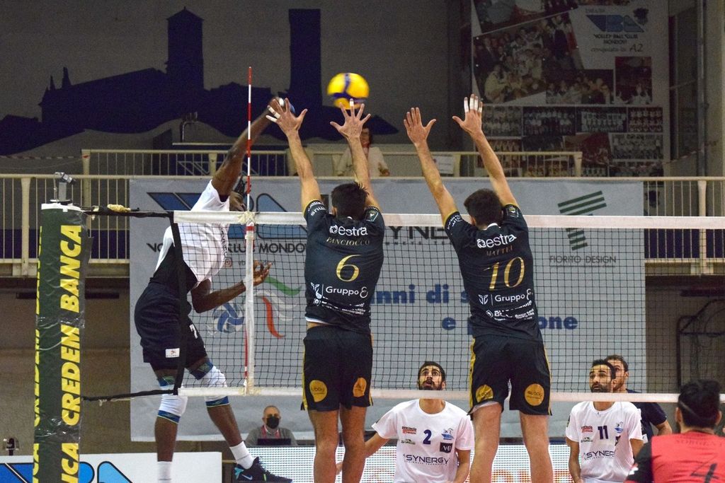 TERZO SET: Onwuelo mette a terra il primo punto. Pronta risposta dei Galletti che prima ritrovano la parità e poi il vantaggio con Ceban. Contro-break per i toscani, avanti 2-4. Dopo l’attacco vincente di Riccardo Mazzon sono tre i punti di vantaggio della formazione ospite. Lo schiacciatore del Vbc, grazie a un servizio potente e preciso, da una scossa alla sua squadra, riportando il punteggio sul 9-9. Il muro di Ceban porta in dote il primo vantaggio monregalese sul 12-11. I punti di distacco salgono a due e sul 14-12 coach Montagnani decide che è giunto il momento di chiamare il time-out. Il video-check restituisce ad Arinze Kelvin un ace inizialmente giudicato out. Vbc avanti 18-15. Ancora un time-out chiesto da Siena sul 20-16. Cianciotta prende il posto di Boscaini sul 22-18. I toscani recuperano due lunghezze. Il vantaggio monregalese si assottiglia e sul 23-22 questa volta è coach Denora a chiamare il time-out. Arriva un set-point per il Vbc sul 24-23. Siena annulla la chance e costruisce un match-point sul 24-25. Nuovo capovolgimento di fronte e ancora un set-point per il Vbc. Al quarto tentativo i toscani trovano la zampata vincente per chiudere sul 30-32 grazie all’ace di Onwelo.