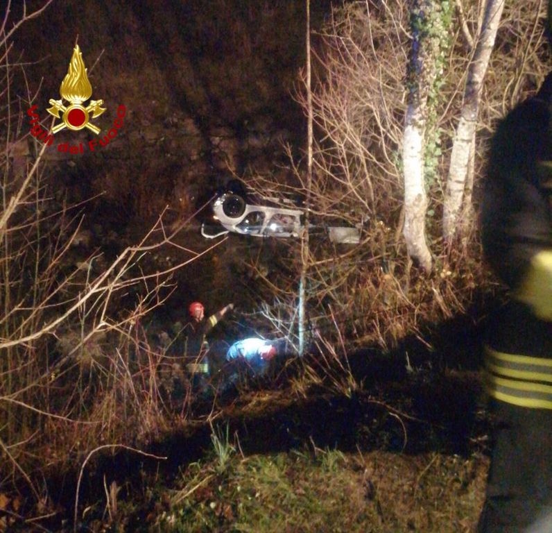 L'allarme è scattato nella serata di oggi, giovedì 18 novembre. Coinvolta una vettura finita in una scarpata nei pressi del ristorante Hotel della Valle.