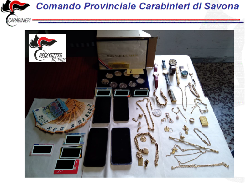 Denaro e preziosi nelle mire di una coppia di uomini provenienti dal Napoletano, finiti in manette grazie a un’operazione dei Carabinieri di Savona. L'appello dell'Arma: "In caso di situazioni strane o dubbie chiamate il 112"