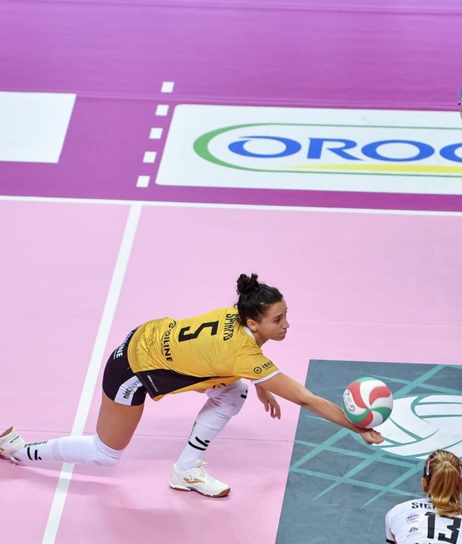 QUINTO SET. Il set comincia malissimo per Monza, che perde subito Alessia Orro: la palleggiatrice nel ricadere dal muro si procura una forte distorsione alla caviglia che la costringe ad uscire sorretta a braccia dalle compagne. Al suo posto Jennifer Boldini. Cuneo ne approfitta e con con Stufi ed un muro si porta sul 3-0, poi però Jasper schiaccia sull'asticella mentre il muro monzese fa il resto: 4-5 per le lombarde e time out di Pistola. Il tocco di Van Hecke ed un ace di Davyskiba lanciano Monza a +3: 4-7 e nuovo time out per Cuneo. Ancora un mani-out di Van Hecke e si va al cambio campo sul 4-8 per Monza. Le Gatte sono in confusione: arrivano due altri muri monzesi (4-10) e nonostante le piemontesi riescano a recuperano un paio di break (7-10), Monza chiude con Van Hecke 12-15.