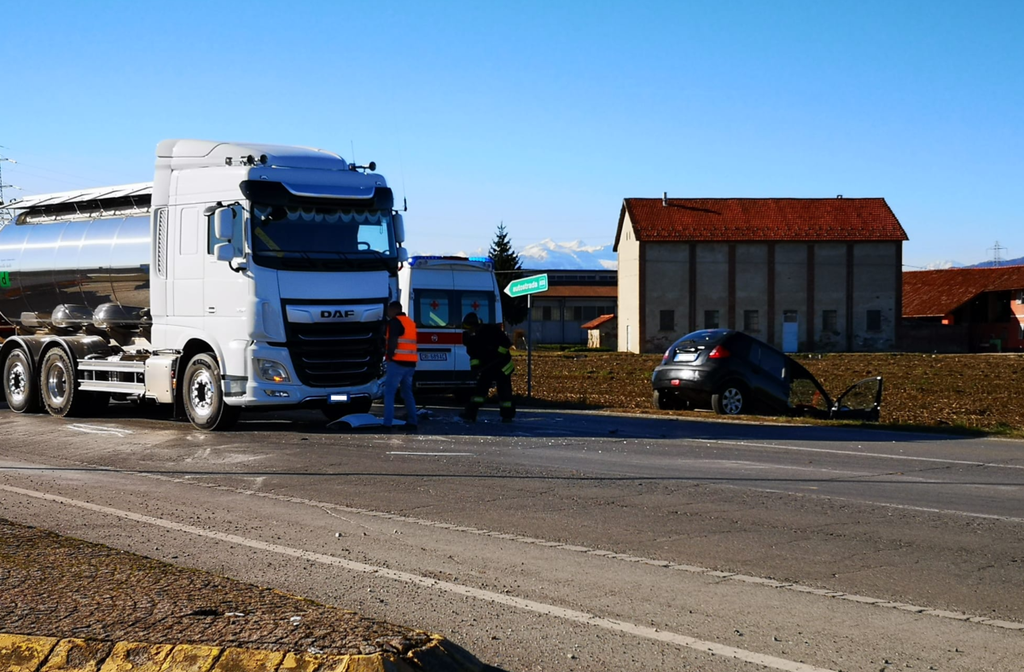 Auto contro camion a Centallo: donna in gravi condizioni [FOTO]