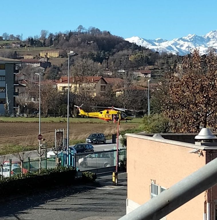 E' successo stamattina nei pressi della caserma della Polizia Stradale. La donna, baby sitter del piccolo, elitrasportata a Cuneo in codice giallo