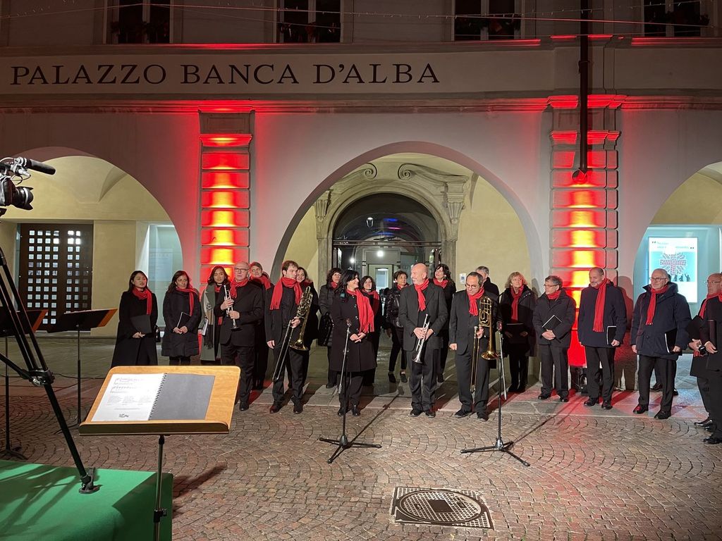 Martedì 7 dicembre, all’imbrunire, il Palazzo Banca d’Alba si è trasformato in un teatro di luci con una esibizione musicale di coro e strumentisti.