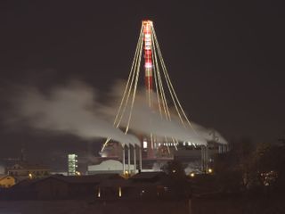 Con il confermato supporto dell’azienda albese Euroelettra, che ha provveduto al suo allestimento lavorando per diversi giorni e stendendo più di 1 km e mezzo di cavi lungo tutta l'altezza della ciminiera, l’albero si mostra in tutta la sua luce.