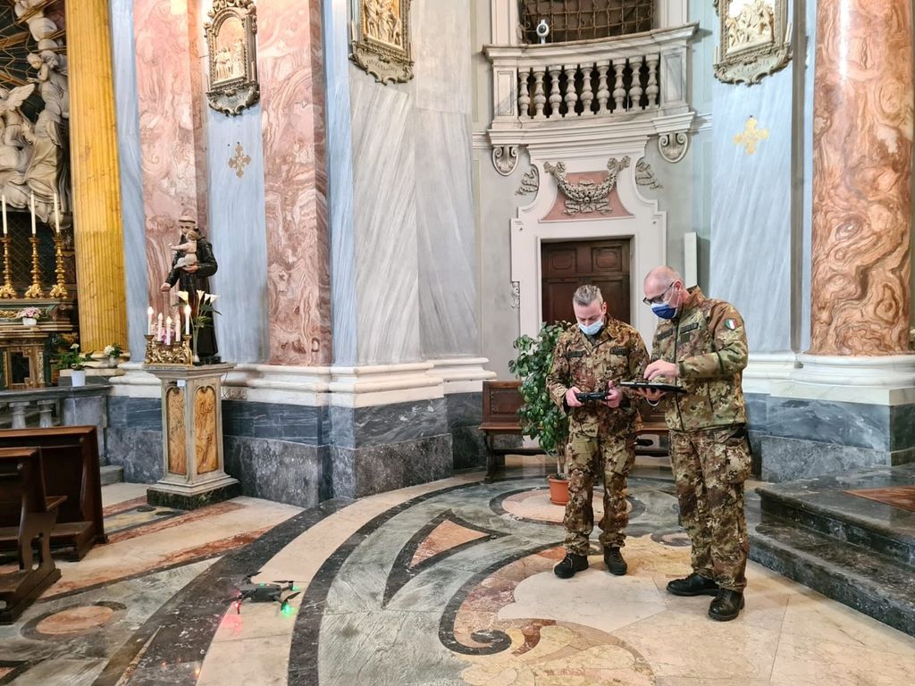 Le apparecchiature, che sono particolarmente utili per ottenere immagini ravvicinate e dettagliate in contesti difficilmente raggiungibili senza l’uso di ponteggi o altre apparecchiature edilizie, sono state fatte alzare da parte del Corpo Militare all’interno di tre edifici religiosi della città: la Chiesa di Santa Maria degli Angeli, la Chiesa di Santa Chiara e il Santuario della Madonna dei Fiori.