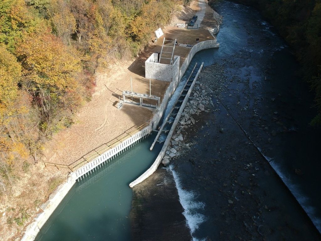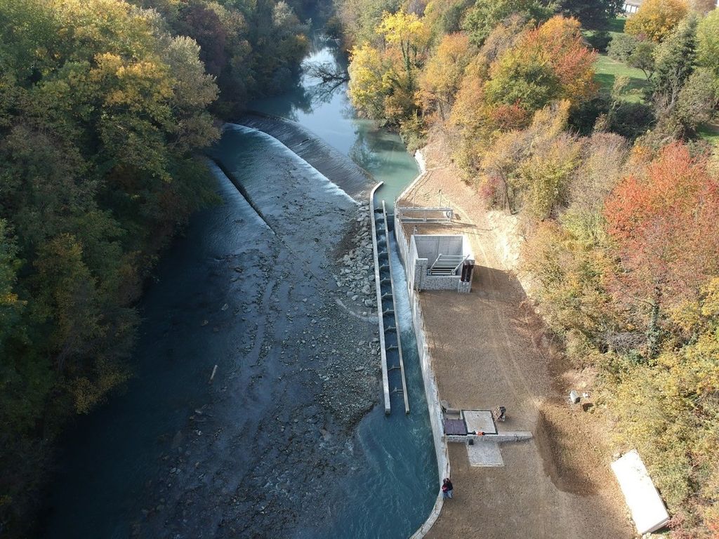 I primi interventi per la realizzazione dell’impianto idroelettrico sul Fiume Dora Riparia sono cominciati a settembre 2020. L’Impianto è stato ultimato a Ottobre 2021 ed è caratterizzato dall’essere completamente interrato, eccezion fatta per il locale di copertura dello sgrigliatore. La scelta progettuale di interrare le opere consente di ridurre al minimo l’impatto visivo e, al contempo, in caso di piene eccezionali della Dora Riparia, riduce l’esposizione delle stesse all’azione dell’acqua.
