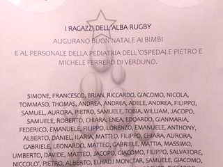 I bambini e i ragazzi dell'Alba Rugby hanno scelto di donare un loro giocattolo al reparto di Pediatria dell'ospedale di Verduno, per augurare un felice Natale ai bimbi e al personale.