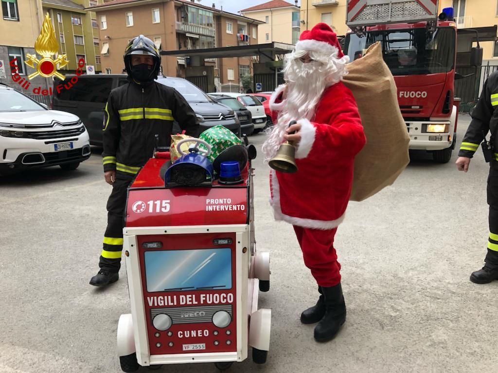 I vigili del fuoco di Cuneo nella mattina di Natale di oggi, sabato 25 dicembre, hanno consegnato i regali donati dall'Abio (Associazione per il bambino in ospedale) ai bambini ricoverati presso l'ospedale Santa Croce di Cuneo.