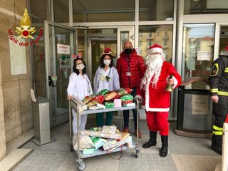I soccorritori sono giunti sul piazzale antistante l'ospedale cuneese e hanno incontrato le infermiere e la primaria del reparto le quali hanno raccolto i regali donati da Babbo Natale e che verranno consegnati ai bambini presenti in corsia e che purtroppo non potranno passare la festa in casa con le proprie famiglie.