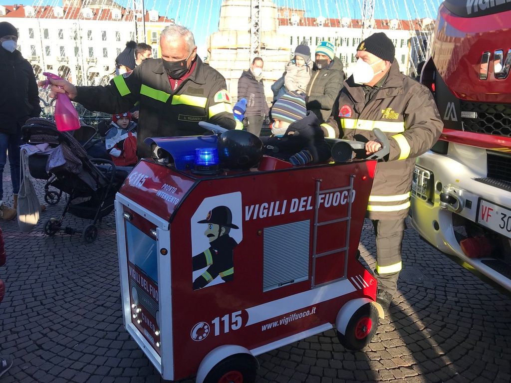 Festa oggi in piazza Galimberti a Cuneo. Il comando provinciale dei Vigili del fuoco ha organizzato un evento legato alla tradizionale "Befana del vigile", regalando un pomeriggio di gioia e avventura ai bambini.