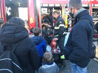 Presenti anche i vigili del fuoco pensionati, che hanno regalato ai bambini il giornalino del Pompiere da colorare.