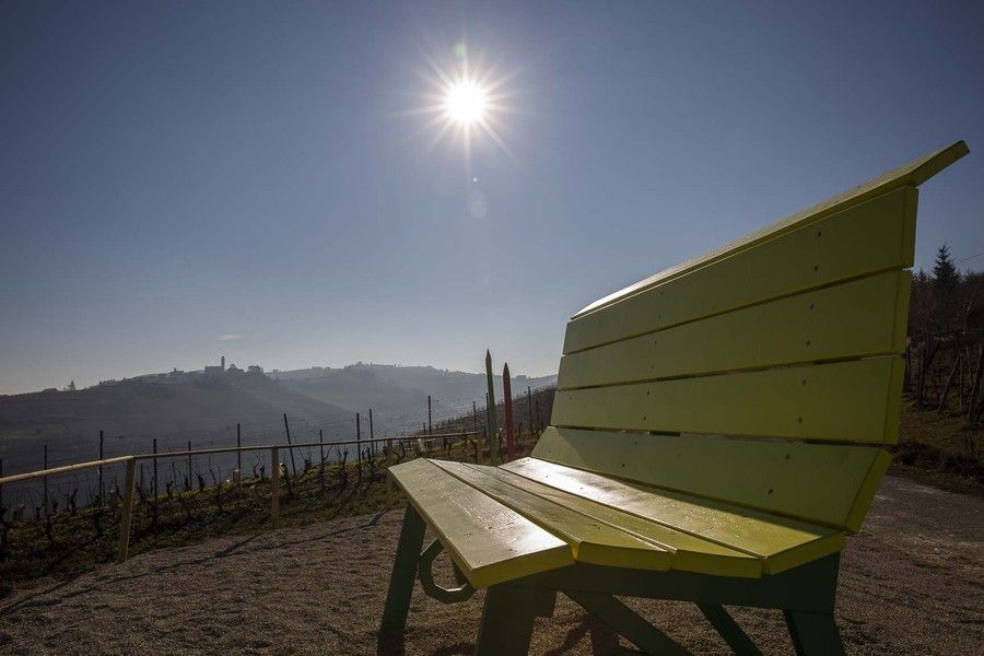 Per volontà dell’associazione “Bottega del Vino Moscato di Castiglione Tinella”, il paese cuneese ospiterà la 191esima Big Bench installata sul territorio, che sarà dedicata al Moscato d’Asti, che è il vino principe di queste terre. Castiglione è infatti il secondo paese produttore di Moscato in termini di bottiglie e ospita alcune tra le colline più prestigiose e vocate alla coltivazione dell’uva Moscato bianco di Canelli.