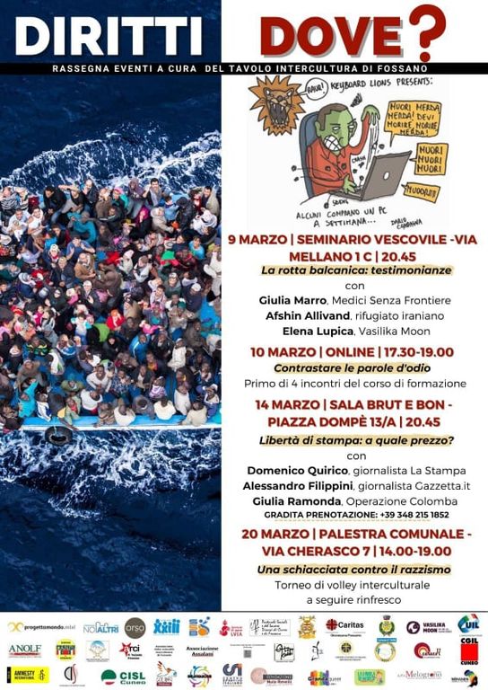 Entra nel vivo in questi giorni "Diritti dove?", la rassegna di eventi ideata e coordinata dal Tavolo Intercultura di Fossano, la realtà cittadina collettiva nata nel 2018, che raggruppa associazioni di volontariato laico e cattolico, organizzazioni non governative, associazioni culturali sportive e sindacali.