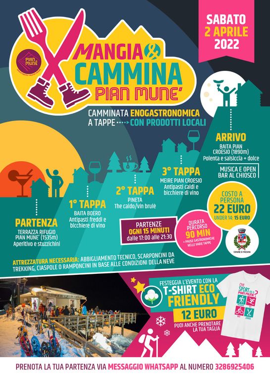 Sabato 2 aprile, dopo due anni di stop forzato, ritorna uno degli eventi più attesi dell’anno: la “Mangia e Cammina” sugli itinerari trekking della località turistica del Comune di Paesana.
