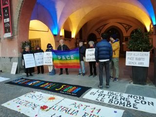 Iniziato alle 17.30 il presidio permanente per la pace davanti al Municipio di Alba, organizzato dal Comune, dall'Ufficio della Pace, dall’associazione “Donne in Nero” e dall’Anpi, su iniziativa del gruppo di opposizione che ha trovato subito il consenso di tutto il consiglio e della giunta comunale.