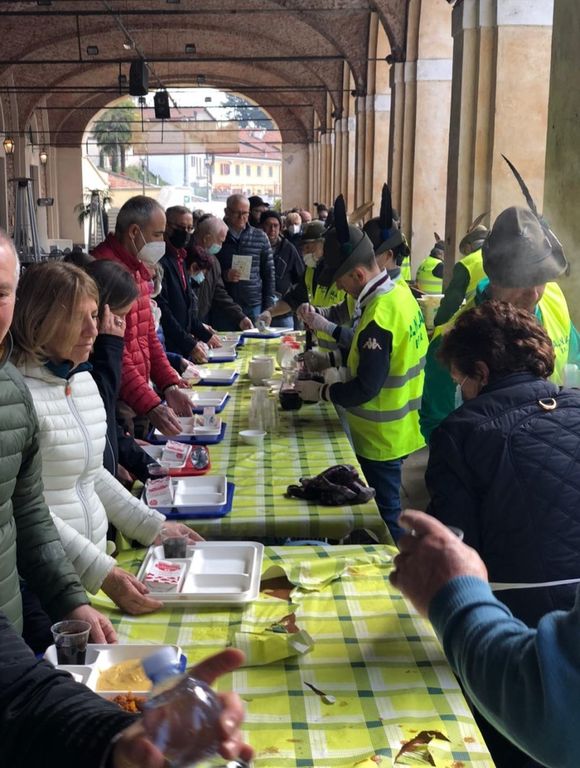 La polenta benefica per il reparto oncologico del nuovo ospedale Ferrero, co-organizzata degli Alpini, su impulso anche della Cascina Sant’Anna di Cavallermaggiore e di altri partner, non poteva andare meglio di così!