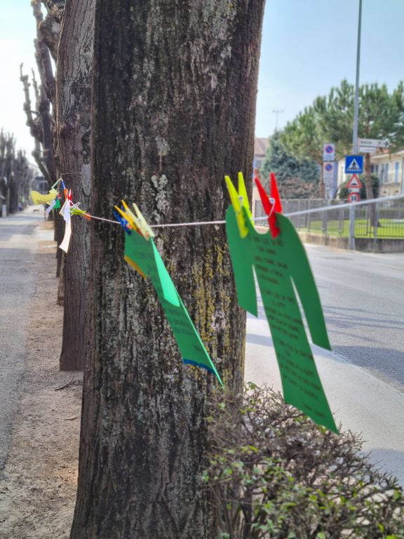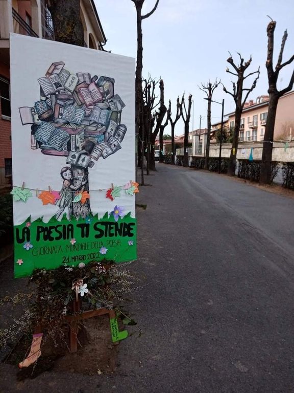 Lunedì, per celebrare la Giornata mondiale della poesia, tanti versi "stesi" come panni al Sole, hanno colorato gli alberi di viale Vittorio Veneto, come piccole gemme in attesa della fioritura: un messaggio di unione e pace.