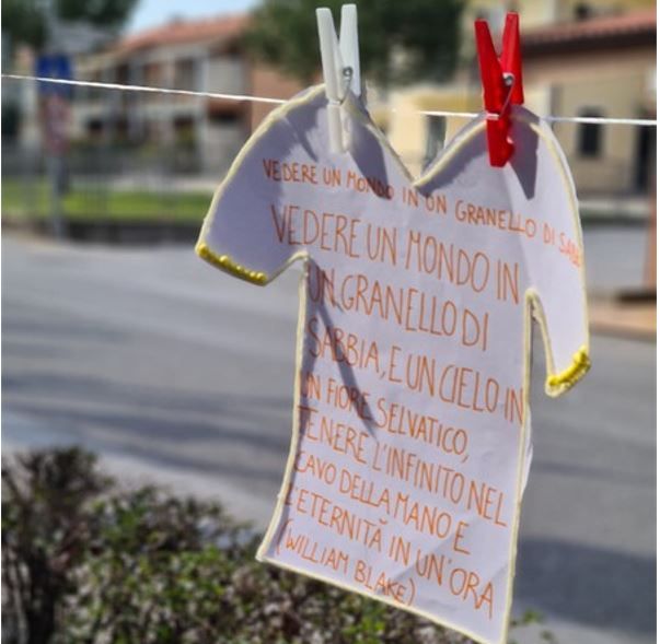 E proprio come una versione 2.0 dei protagonisti de "L'attimo fuggente", ognuno ha continuato a scegliere i versi poetici che lo colpivano di più, senza regole o indicazioni, se non quella di seguire l'emozione. E così l'iniziativa è stata portava avanti, perfezionata e, tramite l'idea di un'alunna, Matilde, si è deciso di "stendere le poesie per il paese", per condividerle con tutti.