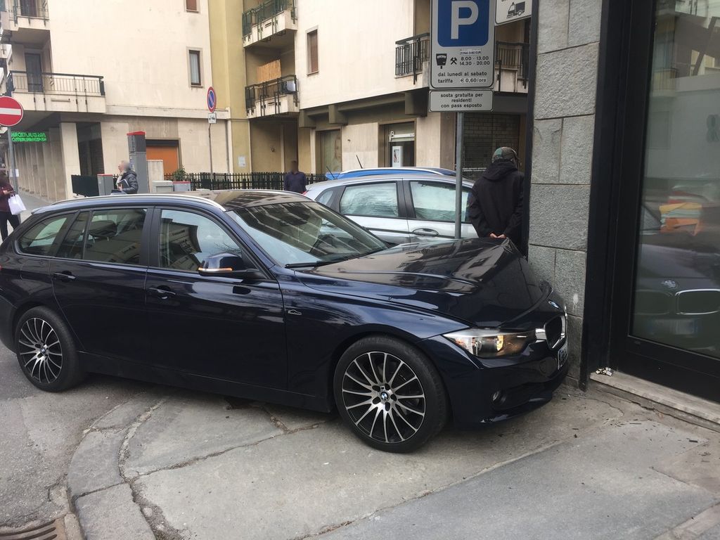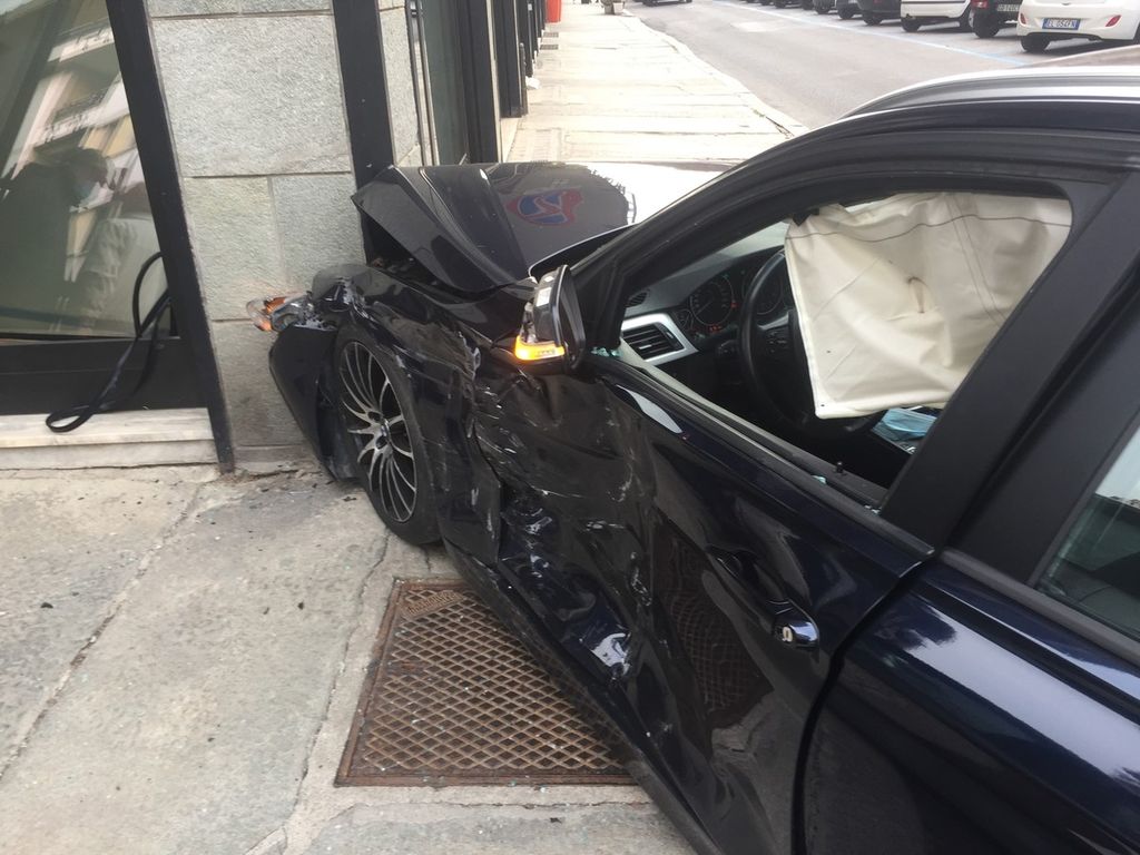 Incidente tra via Bassignano e via Schiaparelli a Cuneo: vettura si schianta contro la vetrata di un ufficio