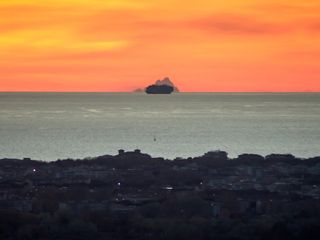 Questa volta la visuale è 'disturbata' da una nave da crociera, ma ciò nulla toglie alla bellezza dello scatto realizzato al tramonto dopo giorni di vento che hanno pulito il cielo dalle nuvole.