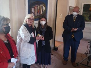 Dopo il sentito ringraziamento del sindaco Carlo Davico, dell’assessore Umberto Ferrondi e dell’assessora Elisa Bottero per l’alto valore culturale e la efficace testimonianza documentaria della mostra di Toponomastica femminile-Presidente la professoressa Maria Pia Ercolini - e per gli incisivi contributi esposti da Giovanna Cristina Gado, referente di Toponomastica femminile e dall’avvocata Anna Mantini, consigliera di Parità Regionale del Piemonte, la referente di Toponomastica femminile ha consegnato al sindaco Carlo Davico la targa “Cherasco Comune amico di Toponomastica femminile-anno 2022”, per la virtuosa azione pubblica, di valorizzazione delle donne di scienza e del loro lavoro, nella logica di genere, messa in campo in collaborazione con l’associazione.