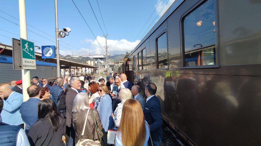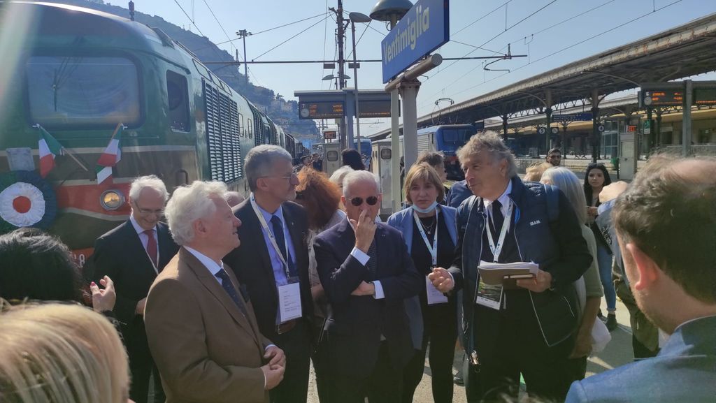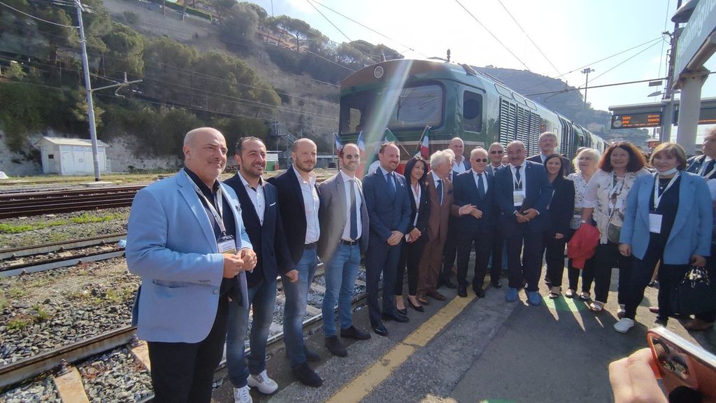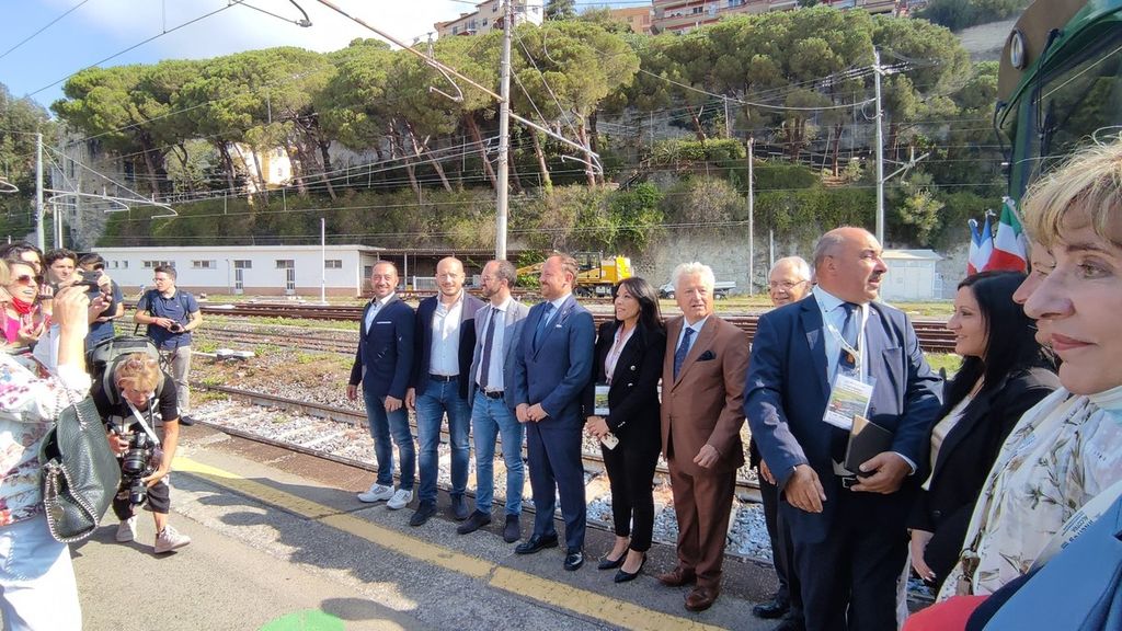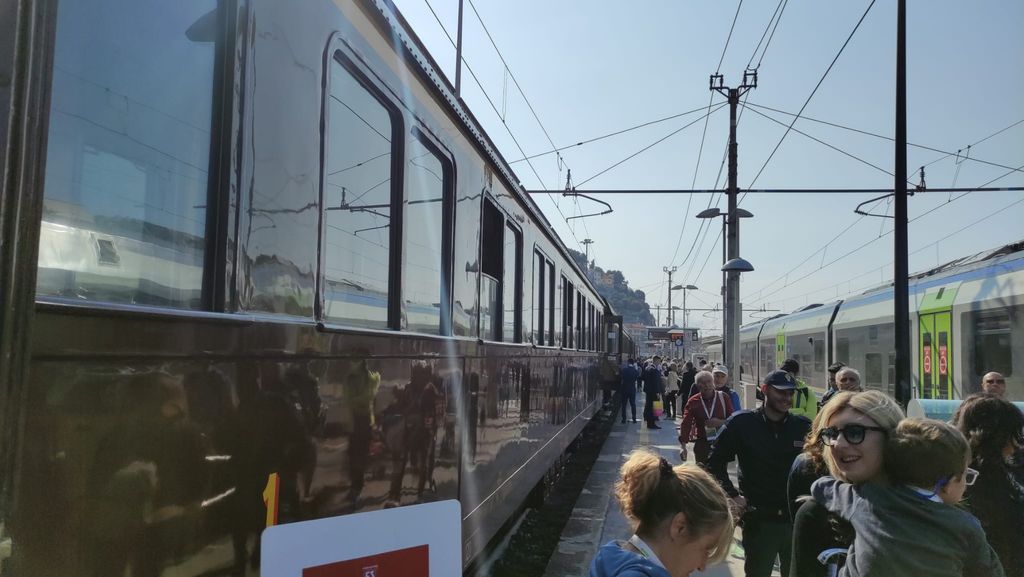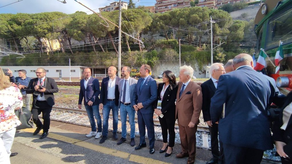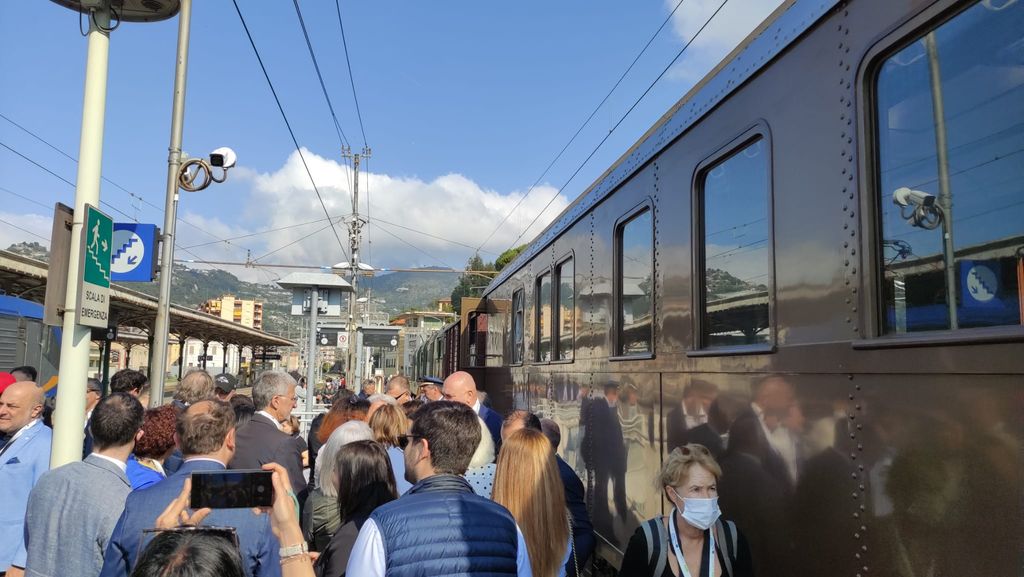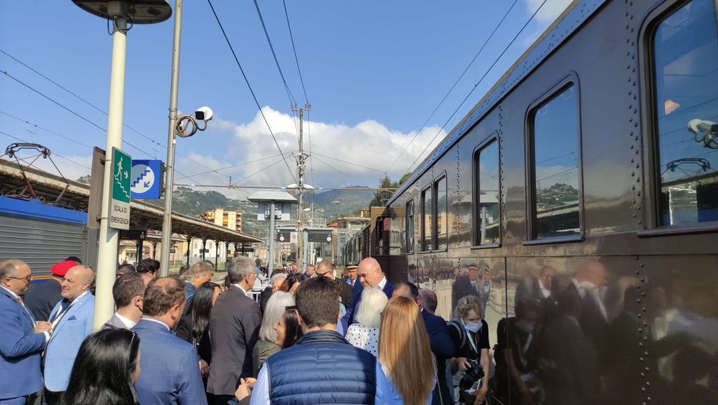 Questa mattina dalla stazione di Ventimiglia è partito "il treno di Biancheri", il famoso treno storico "Centoporte" che prende il nome dal presidente emerito della Camera dei Deputati, il ventimigliese Giuseppe Biancheri. Fu lui infatti a contribuire alla realizzazione della Nizza-Ventimiglia-Cuneo. Oggi a distanza di tanti anni il convoglio è stato scelto per festeggiare la riapertura della gloriosa tratta. L'iniziativa rientra nel progetto ALPIMED MOBIL, finanziato dal programma europeo di Cooperazione Italia-Francia ALCOTRA. Tantissime le persone che si sono presentate a Ventimiglia per questo momento importantissimo per la città di confine. In prima linea sul binario d'arrivo c'era il sindaco Gaetano Scullino.