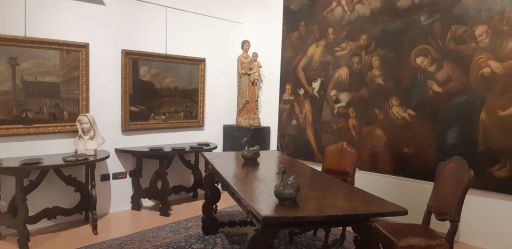 Tra le opere e i manufatti esposti che il pubblico potrà ammirare (sabato e domenica dalle 10 alle ore 20, gli altri giorni dalle 15 alle 20) una Madonna con Bambino opera del Maestro Francesco di Valdambrino Domenico (1363 - 1435 Siena), una coppia di angioletti barocchi di ambito berniniano, sorretti da basi a forma di nuvole, intagliati e dorati (XVI-XVII secolo, Roma), un comò piemontese a demilune Luigi XVI, una scenografica galleria di busti bianchi.