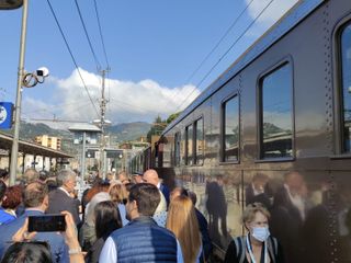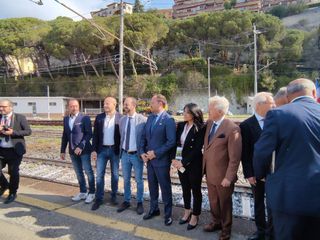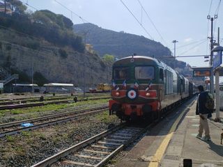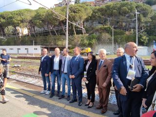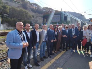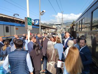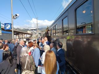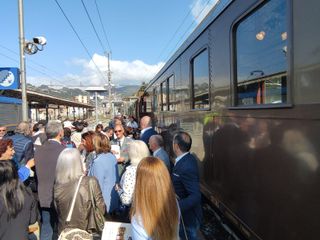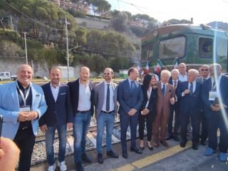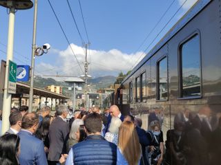 Questa mattina dalla stazione di Ventimiglia è partito "il treno di Biancheri", il famoso treno storico "Centoporte" che prende il nome dal presidente emerito della Camera dei Deputati, il ventimigliese Giuseppe Biancheri. Fu lui infatti a contribuire alla realizzazione della Nizza-Ventimiglia-Cuneo. Oggi a distanza di tanti anni il convoglio è stato scelto per festeggiare la riapertura della gloriosa tratta. L'iniziativa rientra nel progetto ALPIMED MOBIL, finanziato dal programma europeo di Cooperazione Italia-Francia ALCOTRA. Tantissime le persone che si sono presentate a Ventimiglia per questo momento importantissimo per la città di confine. In prima linea sul binario d'arrivo c'era il sindaco Gaetano Scullino.