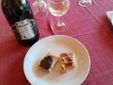 Via con i crostini fatti con pane di Triora in versione paté di olive e acciuga. Immancabile un filo d'olio.