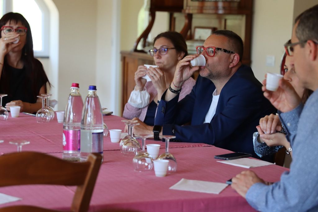 Un esame organolettico proposto all'Antica Azienda Raineri di Chiusanico nel corso di una giornata di porte aperte dedicata ai giornalisti.