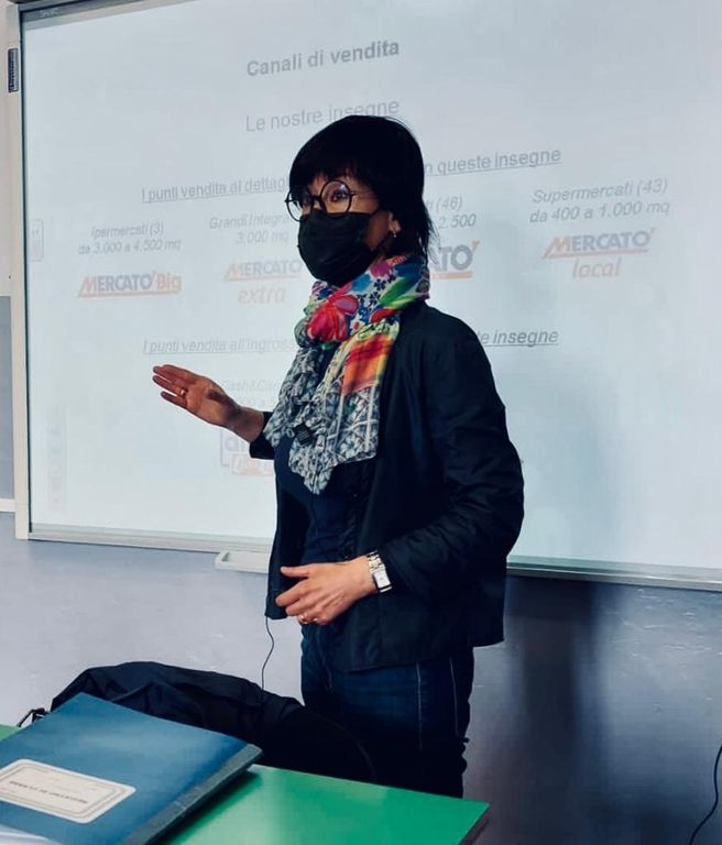 L’incontro è iniziato con una presentazione del gruppo Dimar e marchi ad esso collegati, illustrando l’escalation ottenuta nel corso degli anni, in particolare sul territorio piemontese, ligure e valdostano. In questa circostanza la Dott.ssa Racca ha prospettato possibili sbocchi lavorativi post diploma all’interno del gruppo da lei rappresentato, offrendo quindi ulteriori possibilità di lavoro rispetto a quelle più legate all’indirizzo di studio.