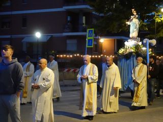 La statua ha iniziato il suo ‘cammino’ dal cortile dell’Istituto San Domenico Savio di viale Rimembranze, ritrovando l’abbraccio della popolazione, che ha intonato preghiere e canti per Lei, aiuto dei cristiani e faro che illumina la via per giungere a Dio.