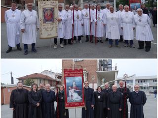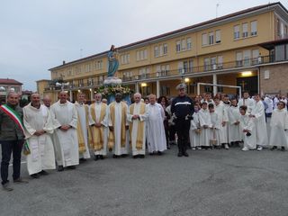 Oltre alle autorità civili, composte dal sindaco Gianni Fogliato e altri amministratori, anche le Confraternite dei Battuti Bianchi e dei Battuti Neri, i Salesiani cooperatori, i giovani del catechismo, gli allievi della scuola media salesiana e un fiume di fedeli, con gli agenti del Corpo di Polizia Municipale a vigilare lungo l’intero perimetro.