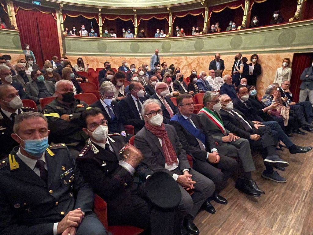Prima del ministro, sul palcoscenico - in una sala gremita di studenti nei palchi, con le autorità in platea - si sono avvicendati l'assessore albese all'Istruzione, Elisa Boschiazzo, e il presidente del Consiglio comunale di Alba, Domenico Boeri, che hanno lasciato spazio al sindaco della Città di Alba, Carlo Bo, e al presidente della Regione, Alberto Cirio.
