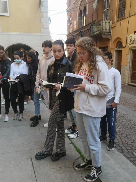 Gli studenti hanno ancora sostato in via Roma, in corrispondenza del negozio di granaglie della signora Pasqualina, madre degli eroi garibaldini Ramorino, dove Edmondo avrebbe desiderato comprare un po’ di riso contenuto nel sacco su cui si era seduto Garibaldi, in occasione della sua visita a Cuneo, nell’aprile 1859. Infine, davanti al teatro Toselli, il prof. Cesana ha ricordato la descrizione divertente che De Amicis fa della rappresentazione del Tartufo di Molière, a cui suo padre lo portò a 8 anni e di cui non capì “un bellissimo nulla”.