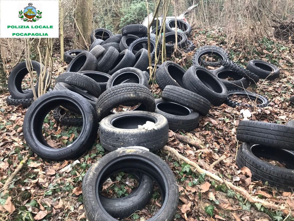 Più di cento pneumatici abbandonati a Pocapaglia: l'autore del reato ha pagato 6500 Euro di multa