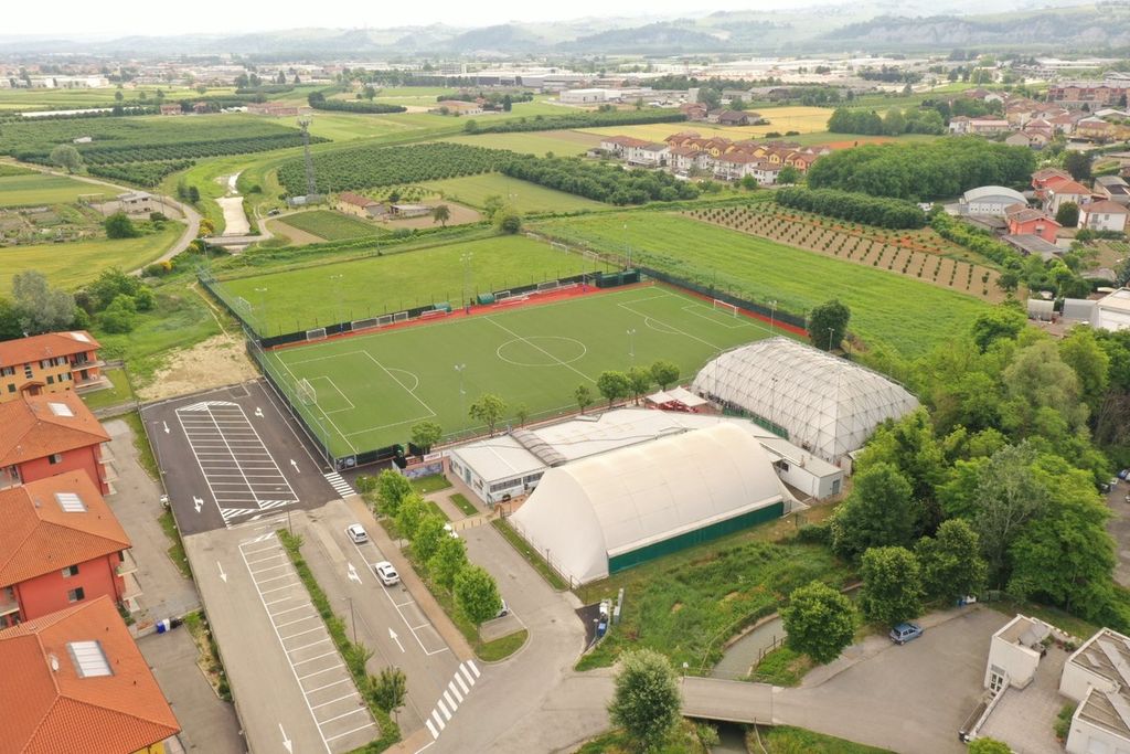 Una veduta del complesso sportivo di Mussotto. Sulla sinistra il nuovo parcheggio appena realizzato dal Comune