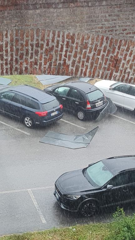 Raffiche di vento fortissime a Ceva: scoperchiato un tetto, lamiere sulle auto [FOTO]