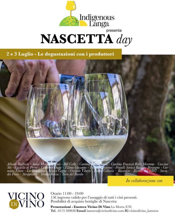 Sabato 2 e domenica 3 luglio i produttori saranno invece ospiti dell’Enoteca Vicino DiVino di La Morra che accoglierà gli enoappassionati per un walk around tasting di Langhe Doc Nascetta e Langhe Doc Nascetta del Comune di Novello, le due denominazioni rappresentate dall’Associazione Indigenous Langa. Durante le due giornate i produttori racconteranno la propria Nascetta al pubblico.
