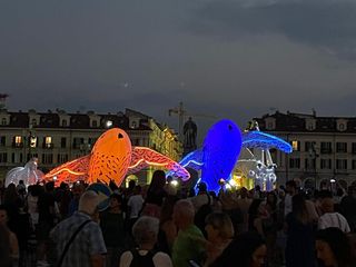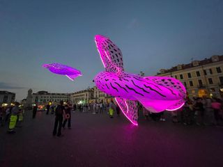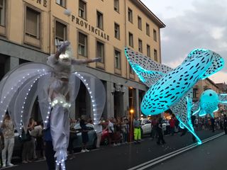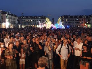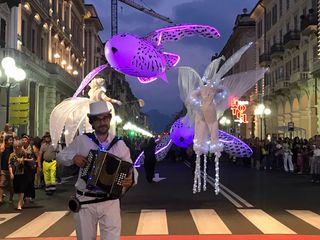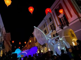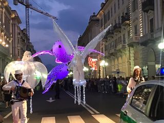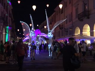 Suggestivo lo spettacolo luminoso itinerante, messo in scena dal gruppo di artisti “Porté par le Vent” accompagnato da musica dal vivo e già protagonista della Festa delle Luci di Lione, partito da Corso Dante per arrivare fino in piazza Galimberti e poi in via Roma.